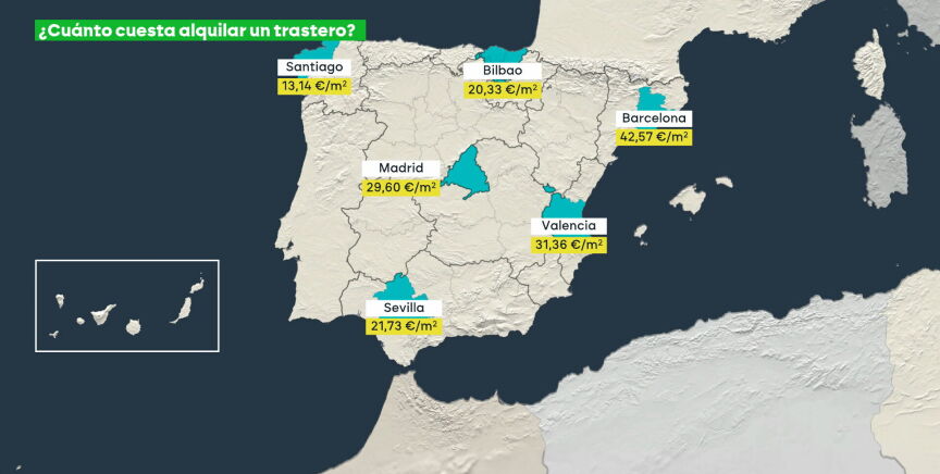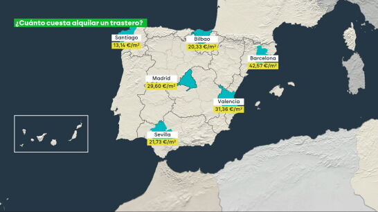 En el otro extremo se sitúa Santiago de Compostela, la ciudad más barata para alquilar un trastero, con un precio de 13,14 euros por metro cuadrado.