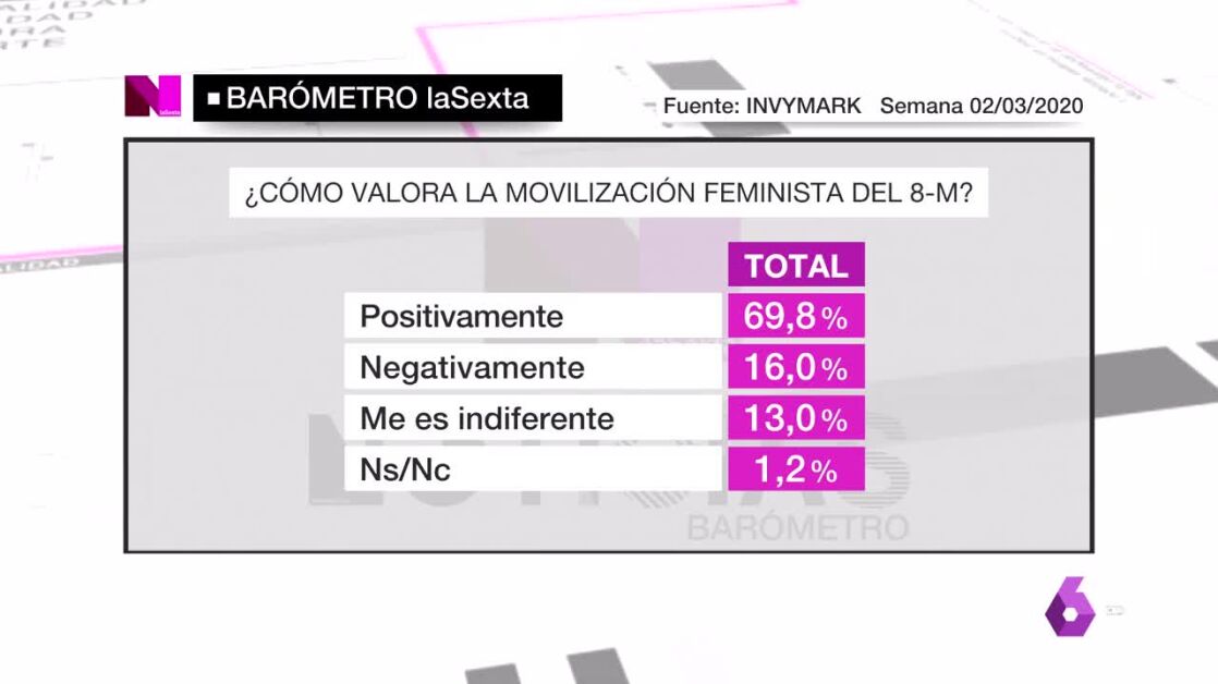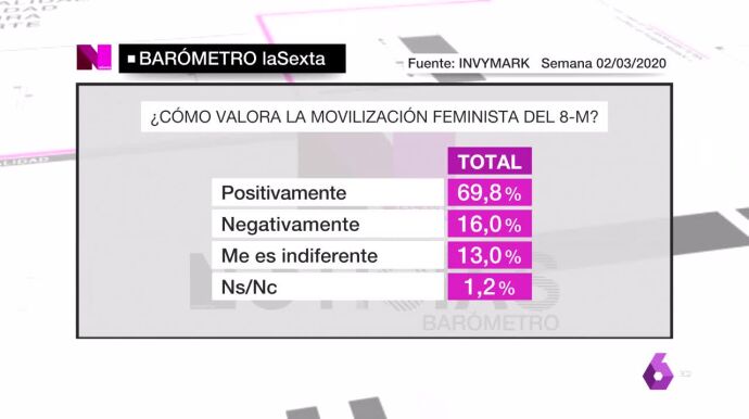 Barómetro laSexta | El 69,8% de los encuestados valora positivamente la movilización del 8M