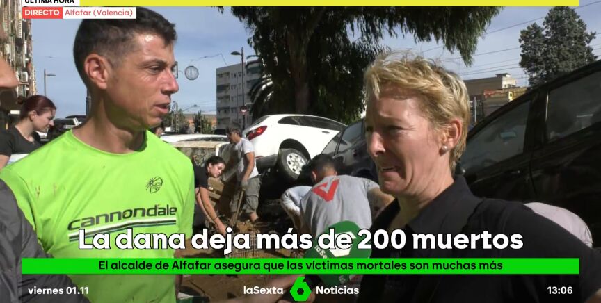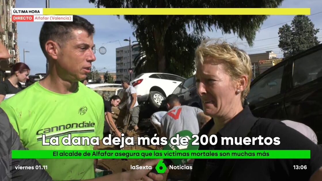 Una queja que se suma a la del alcalde de Alfafar, Juan Ramón Adsuara, que ha realizado una llamada de auxilio, señalando que hay dos barrios de su localidad a los que todavía no pueden acceder, confirmando que allí hay fallecidos. Por tanto, ha solicitado ayuda de las instituciones para acceder a esa zona.