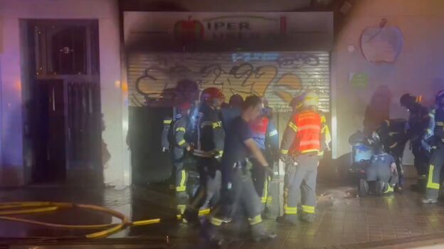 El fuego que se ha producido esta madrugada en un supermercado situado en un edificio del numero 3 de la plaza San Vicente de Paúl, en el distrito de Carabanchel, según información facilitada por Emergencias 112.