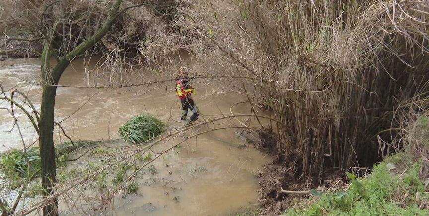 La disminución del caudal del río y la reducción de la lámina de agua ha facilitado este domingo las labores de rastreo y ha permitido intensificar la búsqueda en la orilla, y sobre las 11.34 un equipo de Bomberos ha visualizado un cuerpo entre la vegetación del meandro del río.