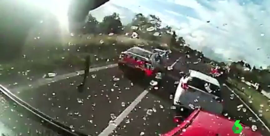 Las cámaras de dos camiones graban un brutal choque en cadena que deja seis heridos en Sídney