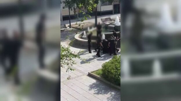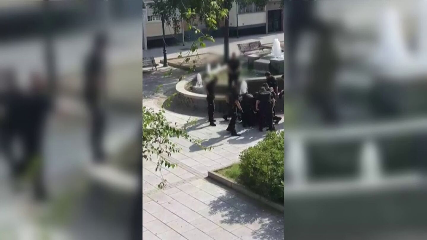 Al ver que un hombre estaba consumiendo estupefacientes, unos agentes se acercaron a él para pedirle que se identificara. El hombre se negó y después de agredir a dos policías y huir, las autoridades consiguieron detenerle en una fuente en la que el ahora arrestado quedó rodeado por más de diez policías.
