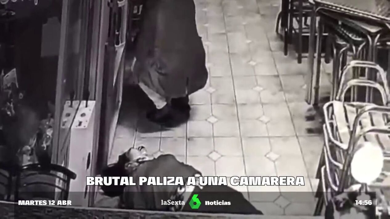 Las imágenes de las cámaras de seguridad del bar muestran los puñetazos y patadas que recibió la joven antes de que robaran el establecimiento.