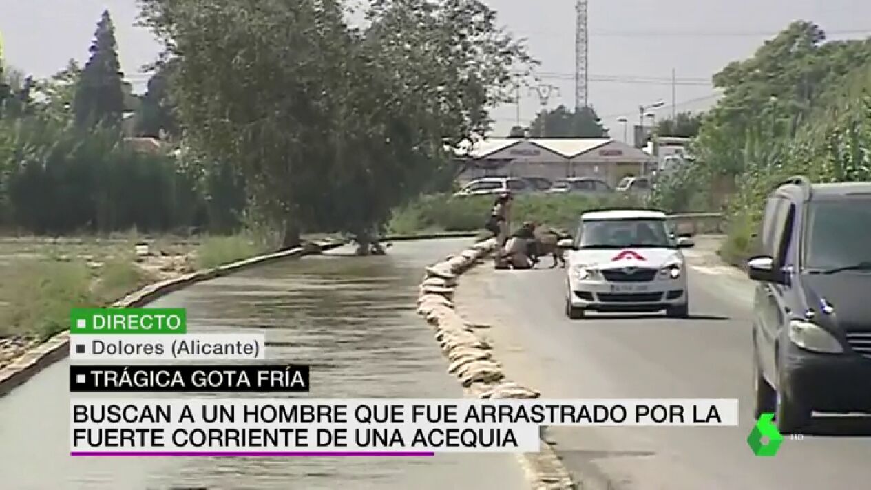 Siguen buscando al hombre arrastrado por el torrente de una acequia en las riadas de Dolores, Alicante