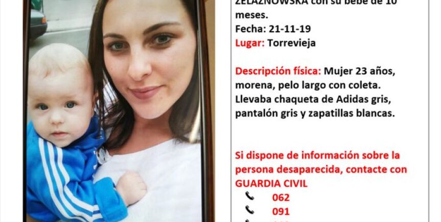 Fuentes de la investigación han informado de que la Guardia Civil ha verificado el paradero de esta mujer, aunque no se han ofrecido más detalles. Desde hacía unas horas, los investigadores barajaban como principal hipótesis que la desaparecida y su bebé, ambos de origen polaco, hubieran tomado un avión voluntariamente a otro país desde el aeropuerto de Alicante-Elche.