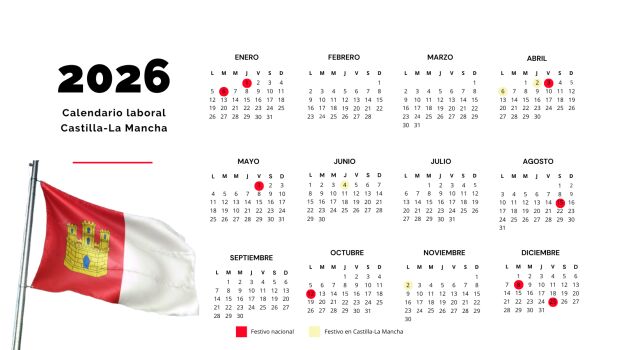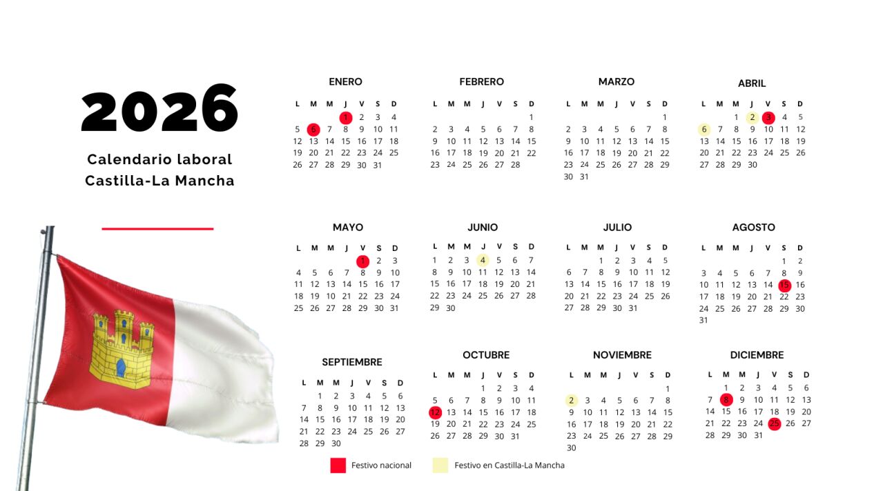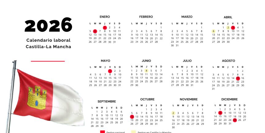 Además de los festivos nacionales y de los cuatro autonómicos, cada municipio de Albacete, Ciudad Real, Cuenca, Guadalajara y Toledo suman otros dos festivos locales al calendario laboral.