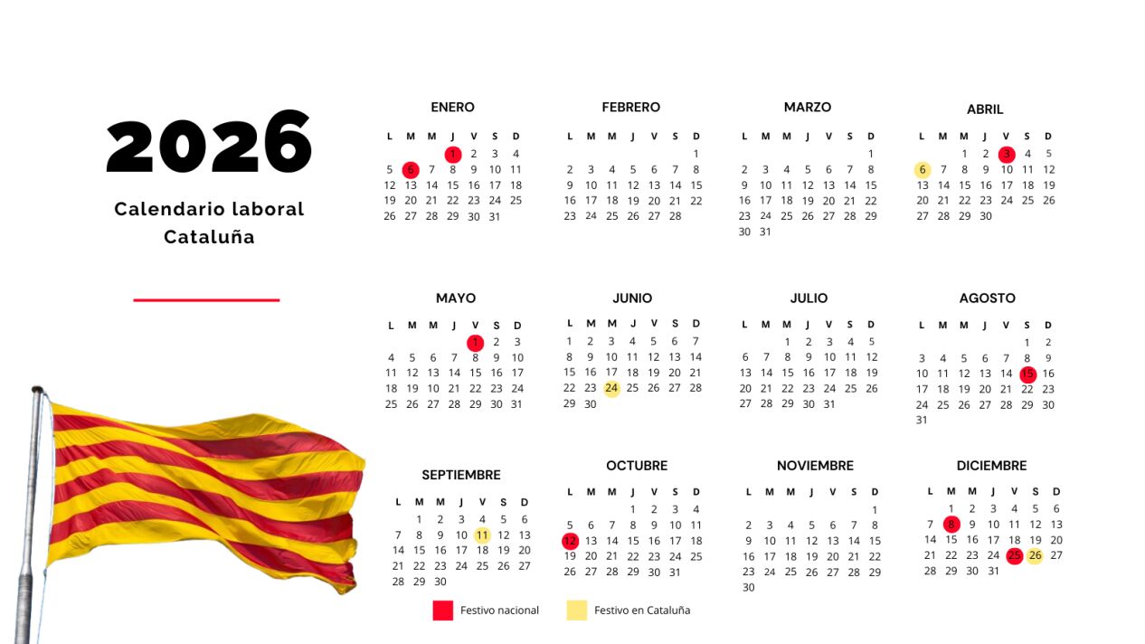 Después habrá que esperar hasta junio para el siguiente. Lo cierto es que Cataluña tiene bien distribuidos sus festivos autonómicos, no concentrados en un solo periodo. El 24 de junio, día de San Juan, festivo en muchos otros puntos del país, también será día inhábil en toda la comunidad autónoma, con especial intensidad en la ciudad de Barcelona, donde se celebra la nit de Sant Joan. En la siguiente tabla puedes consultar todos los festivos, locales, autonómicos y nacionales, para Cataluña en 2026: