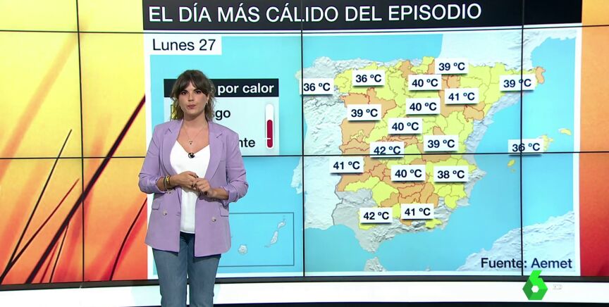 En concreto, este lunes habrá entre 37 y 41 grados en Logroño, Pamplona, Burgos, Zaragoza, Teruel, Zamora y Salamanca, mientras que se podrá llegar a los 42 grados en Valladolid, Toledo, Ciudad Real y Andalucía.