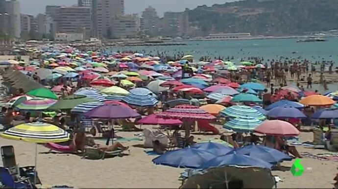 Los vecinos de Calpe cuentan que en invierno es un "pueblecito tranquilito". Sin embargo, en verano "crece de una manera desorbitante". La definición gráfica, como se puede ver en el vídeo, es una playa llena de sombrillas.