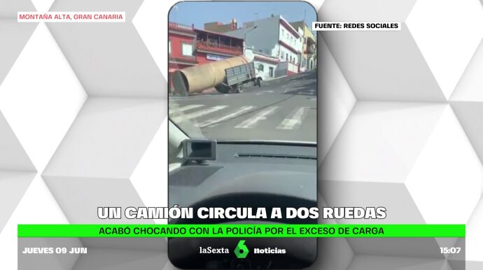 En el vídeo que acompaña a estas líneas, vemos al vehículo cayendo cuesta abajo debido al peso de la carga que lleva, un enorme tubo que excede con mucha claridad las dimensiones del camión. Durante el trayecto, el tubo roza el suelo, y el conductor choca con varios vehículos, entre ellos uno de Policía.
