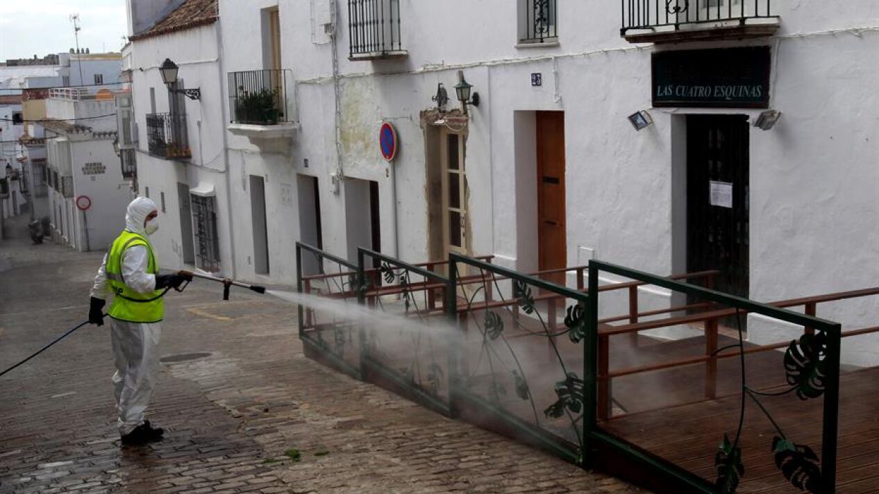 Zahara de la Sierra, en Cádiz, es otro de los municipios que está fumigando con productos desinfectantes. El Ejército y el Ayuntamiento de la localidad han pulverizado a mano las vías públicas, especialmente las más cercanas a farmacias, centros sanitarios y supermercados.