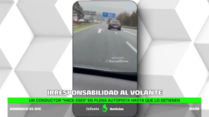 El hombre llegó incluso a estar cerca de chocar con el muro del arcén tras dar bandazos e invadir ambos carriles de la carretera. Finalmente, tal y como puedes ver en las imágenes, varios conductores consiguieron detenerlo y le obligaron a entregar las llaves del coche.
