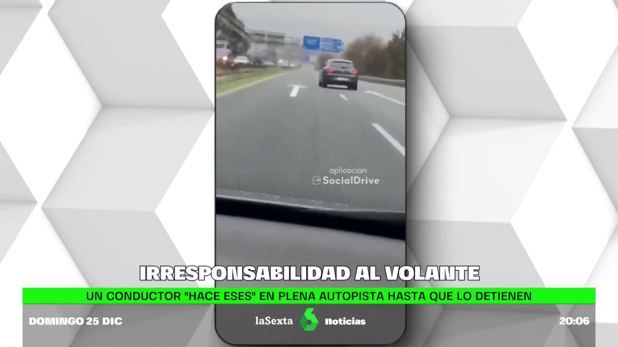 El vídeo muestra la irresponsabilidad de un conductor al volante, que da bandazos e invade ambos carriles hasta casi chocar con el muro del arcén. Finalmente, varios conductores pudieron detenerlo.