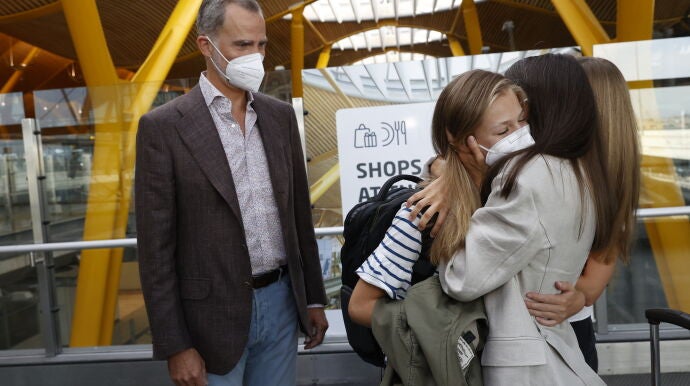 La cariñosa despedida de los reyes a Leonor en el aeropuerto de Barajas y la tristeza de la infanta Sofía