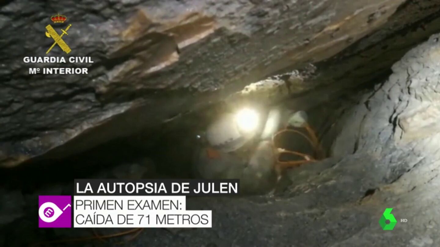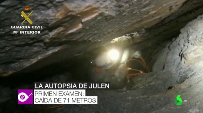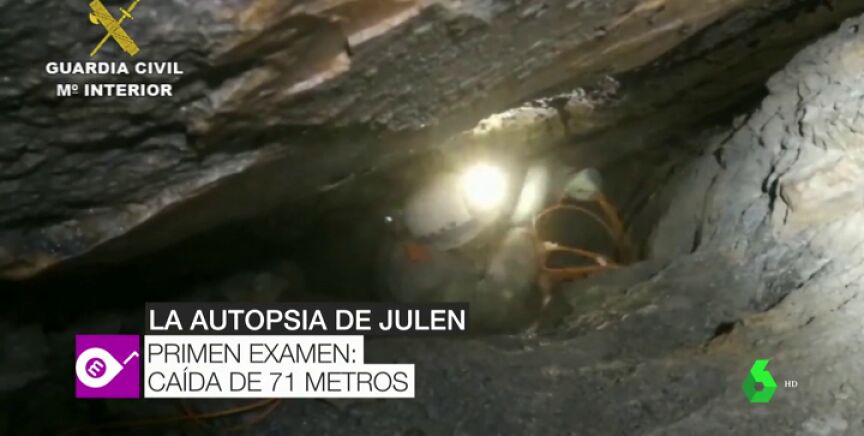 En cuanto dieron con Julen sacaron la primera conclusión: fue una caída libre, según la posición en la que encontraron el cuerpo. Al rescatarlo, dos médicos forenses lo esperaban en la superficie. Lo examinaron al momento, sobre el terreno, y concluyeron que murió el día de la caída.