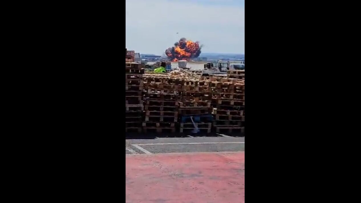Enorme susto durante una exhibición del Ejército del Aire en la base aérea de Zaragoza. Un cazabombardero F18 se ha estrellado en el interior de las instalaciones militares por causas que se investigan.