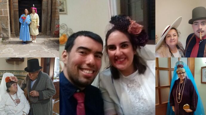 Celebran una boda virtual con batas y mantillas: "Estamos aquí reunidos por la gracia del Covid-19"