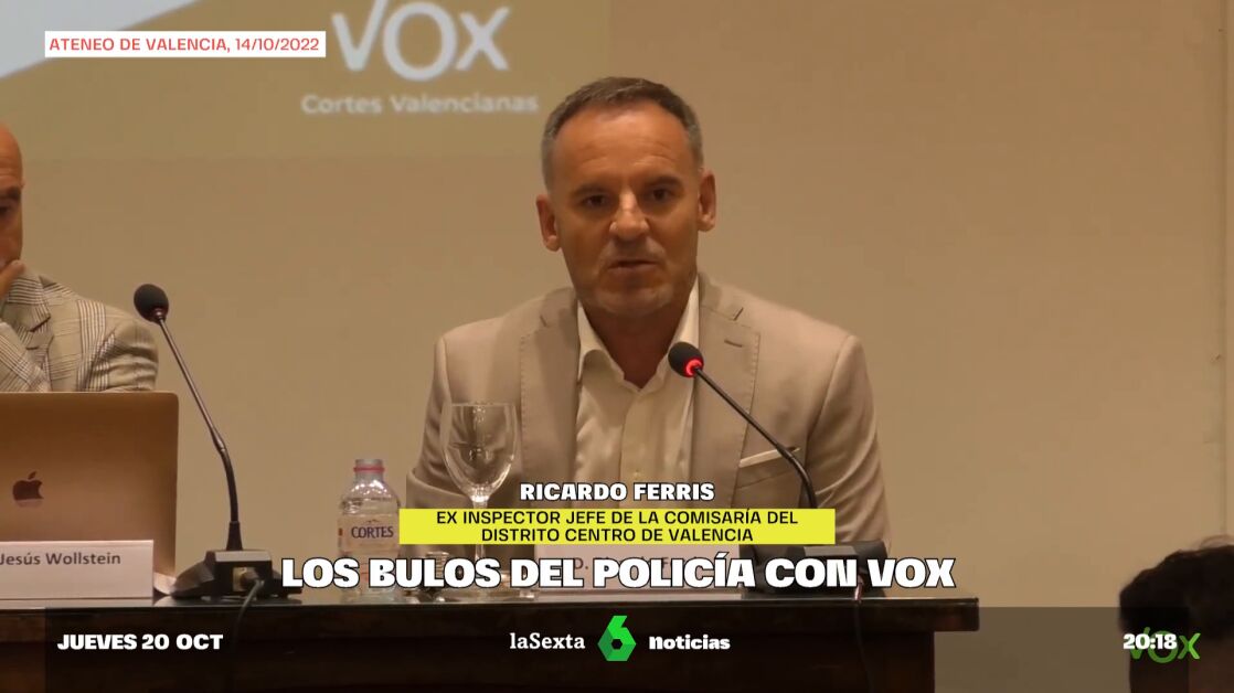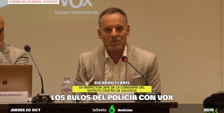 El jefe de la Comisaría del Distrito Centro de Valencia, Ricardo Ferris, ha sido relevado por "pérdida de confianza" tras proferir bulos xenófobos en un acto de Vox donde llegó a afirmar que "inmigración ilegal es igual a delincuencia".