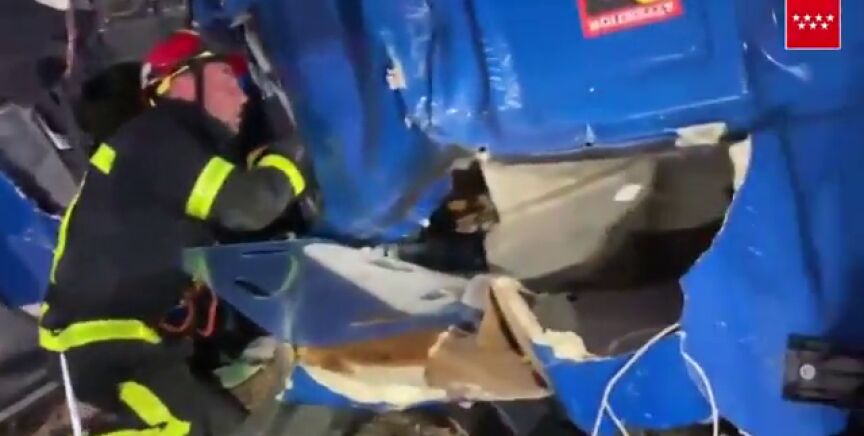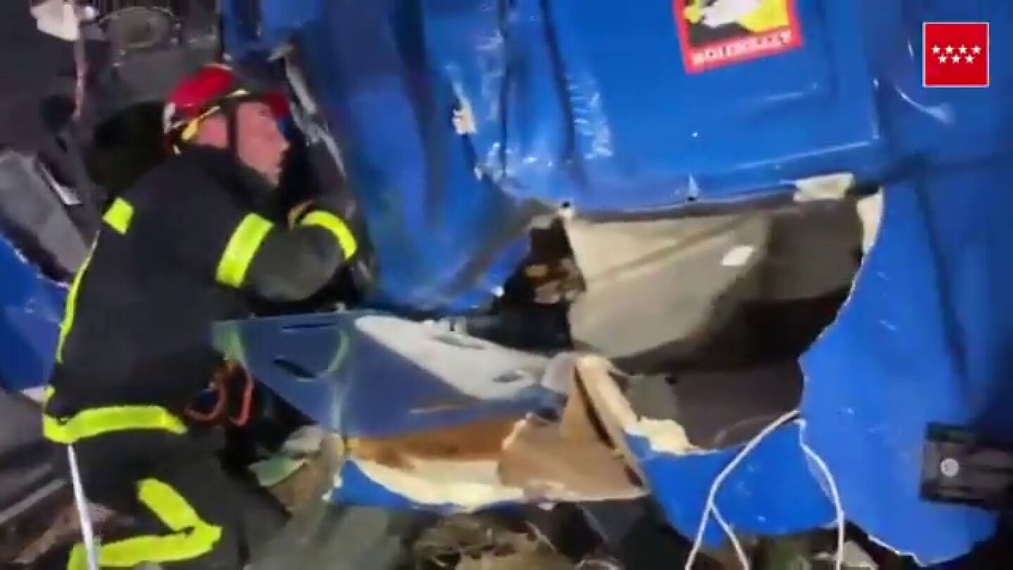 Así ha sido el complicado rescate de uno de los heridos en el choque de camiones en Getafe (Madrid)