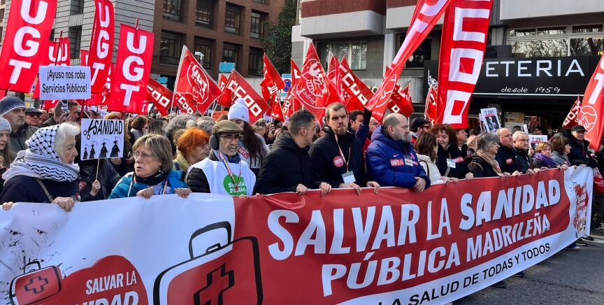Cientos de personas se manifestaron en Madrid, convocadas por la Asociación para la Defensa de la Sanidad Pública de Madrid, la Federación Regional de Asociaciones Vecinales de Madrid, CC.OO. y UGT, para denunciar el "deterioro intencionado" de la sanidad por el Partido Popular de Isabel Díaz Ayuso. La marcha, iniciada en el Paseo del Prado, contó con la participación de líderes políticos como Óscar López del PSOE-Madrid y portavoces de Más Madrid. Bajo el lema 'Salvar la sanidad pública madrileña', más de 100 colectivos exigieron la universalidad, sostenibilidad y financiación adecuada de la sanidad pública. Jorge Nacarino, presidente de la FRAVM, criticó la baja inversión sanitaria y recordó la 'Marea Blanca' de 2012, prometiendo continuar con las protestas para cambiar la política sanitaria.