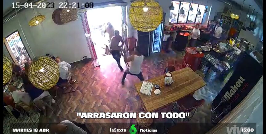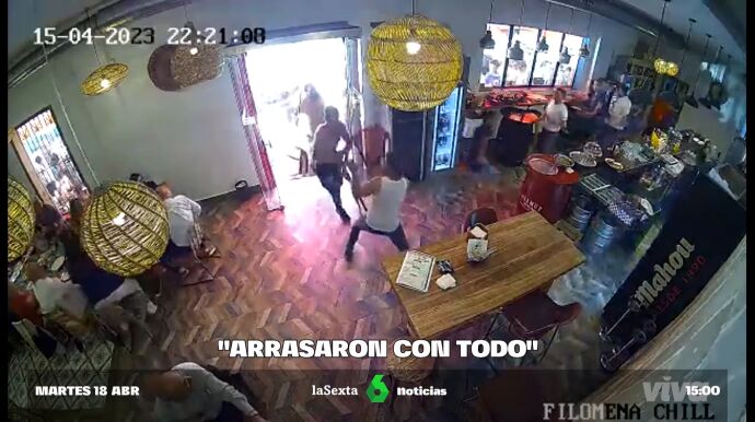 Cuando entraron al bar, los clientes, aterrorizados, salieron corriendo y los trabajadores se tuvieron que esconder y trataron de esquivar sillas, vasos y más objetos de cocina que vuelan por los aires. Incluso, se llegaron a hacer con cuchillos: "Dame el cuchillo este", les pidió una camarera que intentó impedir que lo utilicen.