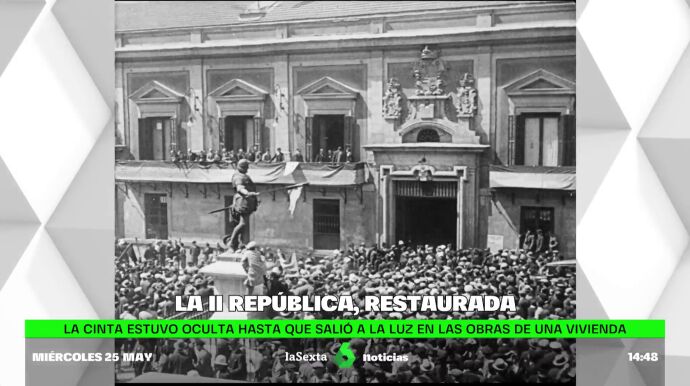 'El amanecer de una nueva era en España', así comienza la cinta sobre los primeros momentos de la Segunda República que ha sido restaurada. Se filmó el 14 de abril de 1931 y en ella se puede ver a gente entusiasmada en la madrileña Puerta del Sol.