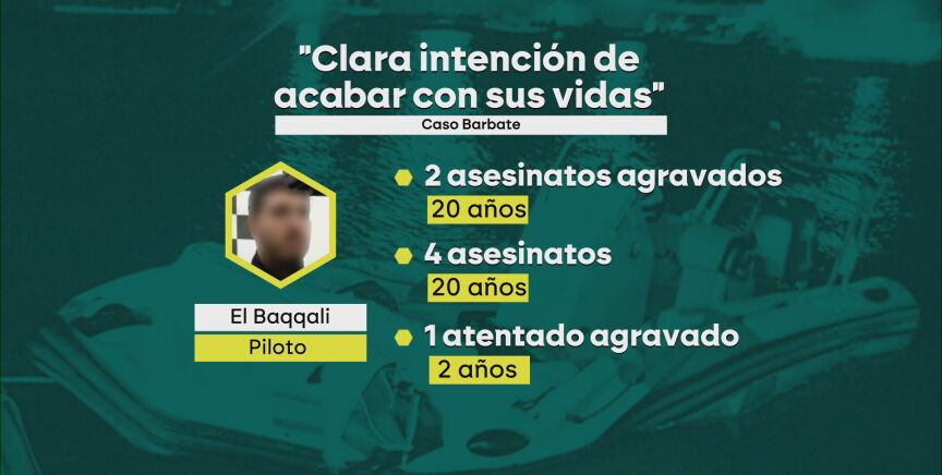Los datelles La Fiscalía ha pedido para este piloto de narcolanchas 42 años de prisión por dos asesinatos agravados por la "intencionalidad" en la maniobra de la lancha que acabó pasando por encima de la patrullera de la Guardia Civil.