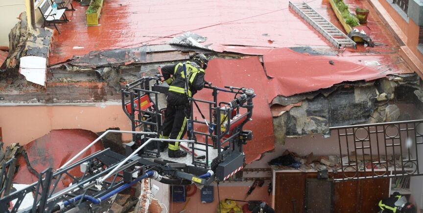 El derrumbe, que provocó heridas leves a otros dos operarios, se produjo pasadas las 11:30 horas cuando los trabajadores realizaban labores de mantenimiento en el techo de una de las plantas del inmueble y se ha venido abajo una parte del forjado de la terraza ubicada en la azotea del edificio.