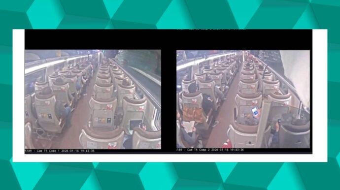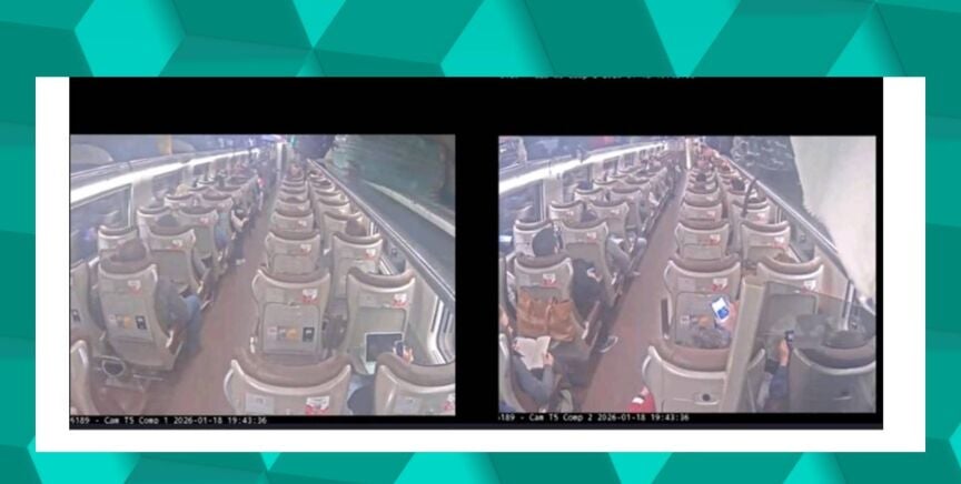 A las 19:43:36 se pierden imágenes de distintas cámaras de los coches 6, 7 y 8 y de nuevo se aprecian posibles esquirlas incandescentes a través de la ventana. Paralelamente, las cámaras de los coches 1 y 3 muestran una "inercia de freno, lo que provoca que el personal que se encuentra de pie se agarre para evitar caerse".