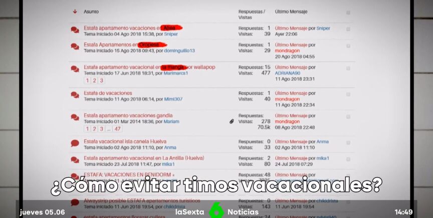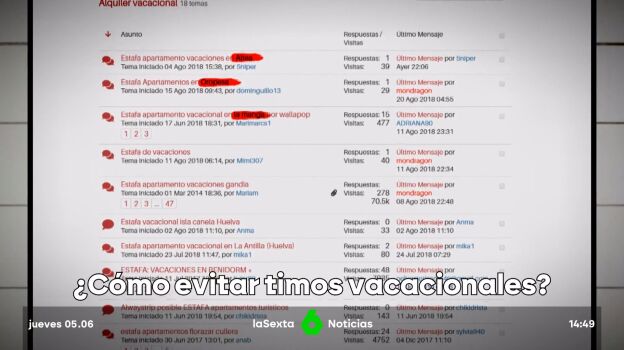 La policía advierte que uno de cada cinco delitos se comenten en la red. Para evitar estas estafas vacacionales, es clave "comprobar en Google si ese alquiler vacacional se corresponde con los de la zona que queremos visitar y si ese precio se corresponde con los que realmente se ofertan", explica Cristina Morales, portavoz de Policía Nacional.