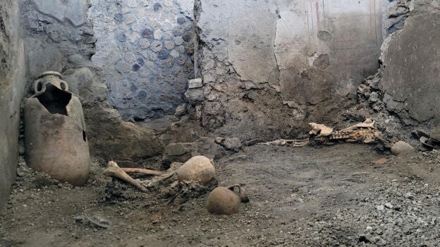 El hallazgo de dos esqueletos ha desvelado que los habitantes no solo fallecieron atrapados por la erupción del Vesubio, sino que a la vez hubo un terremoto que provocó derrumbes como el del edificio en el que se han encontrado estos cuerpos.