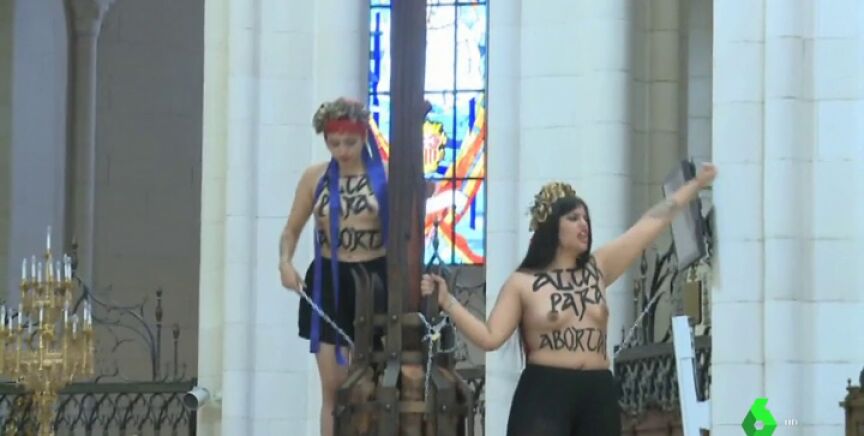 Condenadas las dos activistas de Femen que se encadenaron en La Almudena como protesta a favor del aborto
