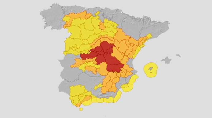 En el siguiente mapa puedes ver la previsión de la AEMET. La escala de colores va del amarillo al rojo: en el caso de las nevadas, por ejemplo, el color rojo implicará que se rondan los 20 centímetros de espesor en la nieve. Arrastra hacia abajo la imagen y verás la distribución de los colores en el mapa. También tienes la opción de seleccionar por categoría, es decir, por viento, lluvia, frío o nieve.