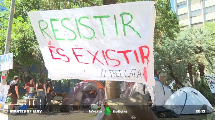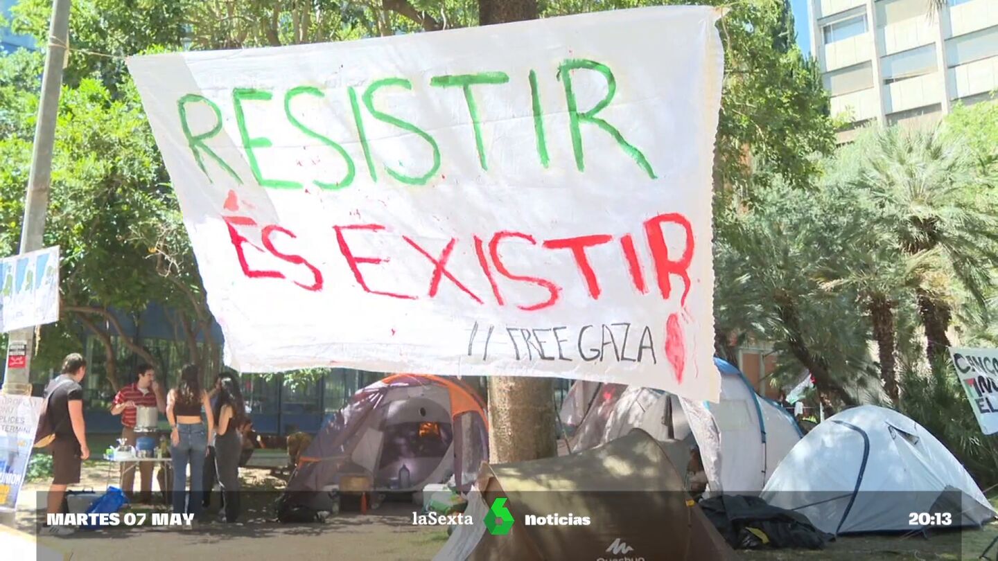 En la Universidad Complutense se ha levantado una acampada que se plantea como "indefinida", como afirma un alumno a laSexta: "No queremos que el Gobierno ni nuestra Universidad sean cómplices del genocidio que está sufriendo".