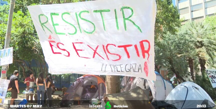 Se extienden las protestas estudiantiles en España pidiendo el fin de la guerra en Palestina. Universitarios de siete comunidades autónomas se han lanzado con tiendas de campaña a la calle. Denuncian la continua agresión del ejército israelí contra los civiles palestinos.