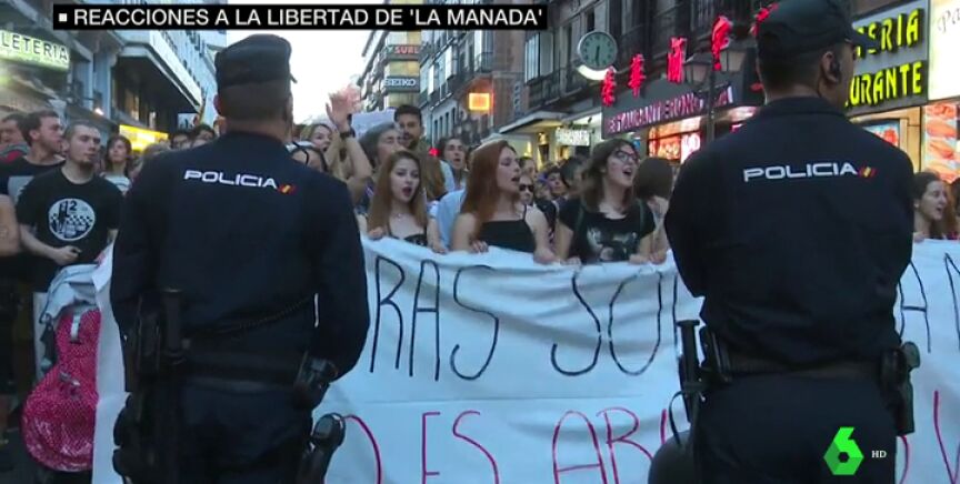 La nueva decisión de la Audiencia de Navarra vuelve a levantar indignación, pero no sorpresa. Colectivos feministas aseguran que la justicia deja a las mujeres desprotegidas una vez más y critican al mismo tribunal que optó por abuso y no agresión sexual y el que tampoco vio riesgos en que los miembros de 'La Manada' salieran a la calle.
