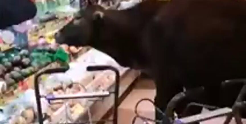 Cuatro vacas invaden un supermercado en Hong Kong y disfrutan del buffet libre
