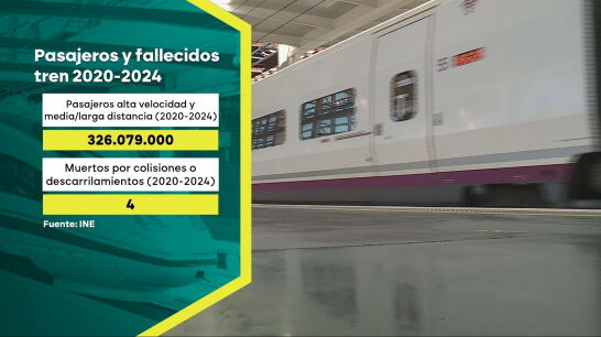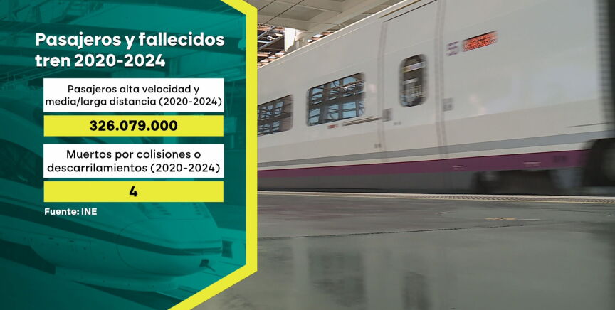 Entre 2020 y 2024 más de 326 millones de personas utilizaron la alta velocidad en España, así como los trenes de media y larga distancia. En ese periodo, fallecieron cuatro personas por colisiones o descarrilamientos, según las cifras oficiales del Instituto Nacional de Estadística (INE). Estas cifras también plasman el aumento de pasajeros en los trenes en esos años: de los más de 26 millones y medio en 2020 a más de 102 millones en 2024.