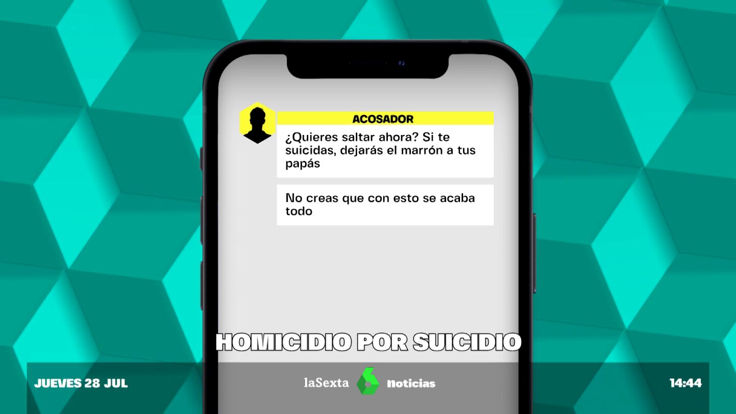 No obstante, el chantaje siguió: "¿Quieres saltar ahora? Si te suicidas dejarás el marrón a tus papás. No creas que con esto se acaba todo". A las pocas horas el joven se quitó la vida arrojándose por el patio de su casa.