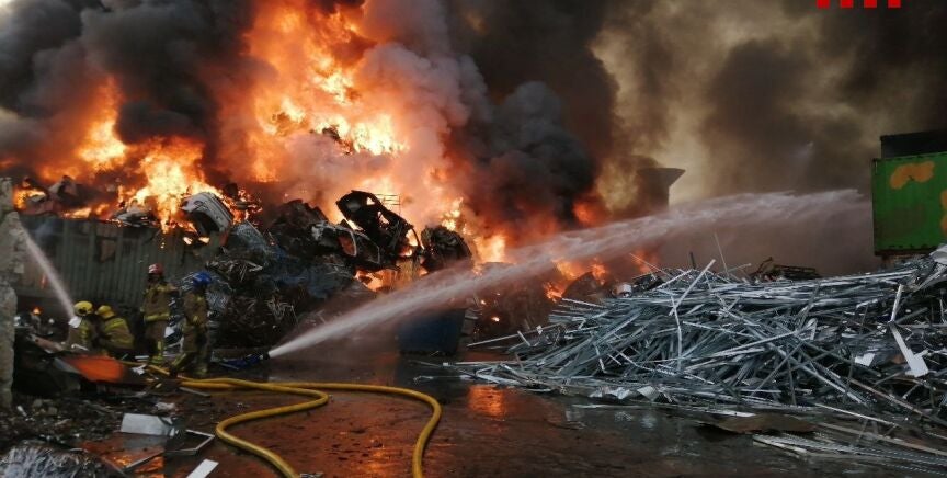 Declarado un incendio en una gran pila de chatarra en una planta de reciclaje en Castellbisbal (Barcelona)