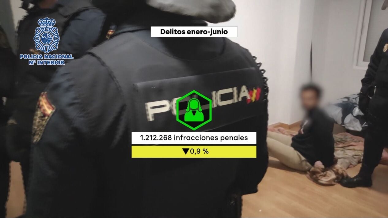 Y es que la delincuencia está bajando este año. Lo hace un 0,9%. Lo hace después de que entre enero y junio se registrasen 10.000 delitos menos que en 2024.