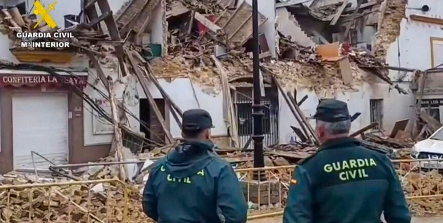 Los detalles La única persona que estaba en el edificio en el momento del desplome era un hombre de 68 años que ha salido ileso con la ayuda de la Guardia Civil.