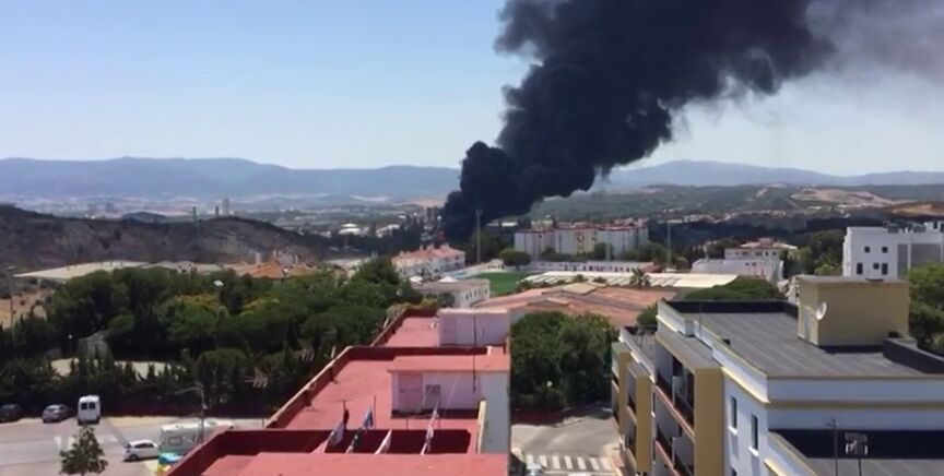 Un incendio se ha declarado en las instalaciones industriales de Indorama en el polígono de Guadarranque, en San Roque (Cádiz), generando una voluminosa columna de humo negro visible desde todo el arco de la bahía de Algeciras.