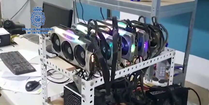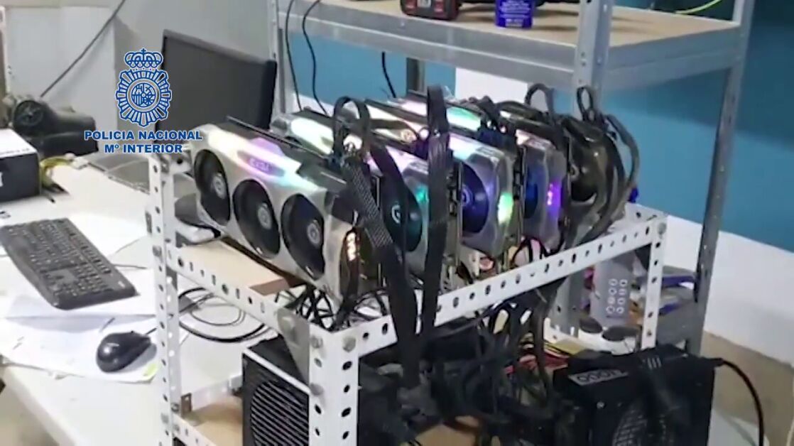 La Policía Nacional ha intervenido 21 equipos informáticos dedicados al minado de criptomonedas, con un valor de unos 50.000 euros.