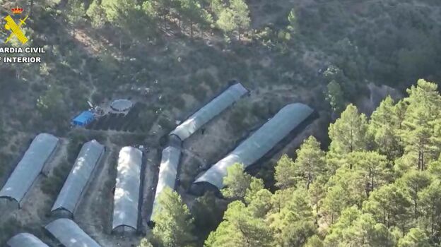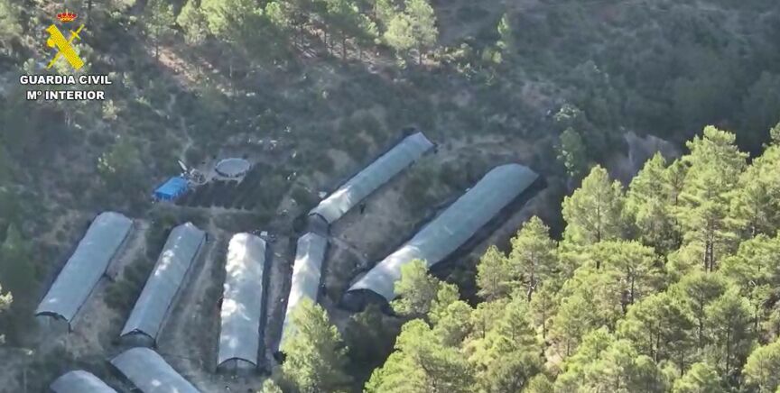 La Guardia Civil ha desmantelado nueve invernaderos con plantaciones de marihuana en mitad del monte en Arcos de las Salinas (Teruel) y ha detenido a cuatro personas que intentaron darse a la fuga cuando fueron sorprendidos por los agentes.