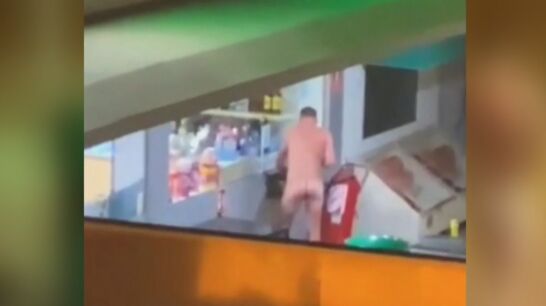 Los vecinos, sorprendidos ante la escena, grabaron al hombre en el interior de la gasolinera desnudo y sin mascarilla. Además, acudió a comprar de madrugada, por lo que también se saltó el toque de queda.