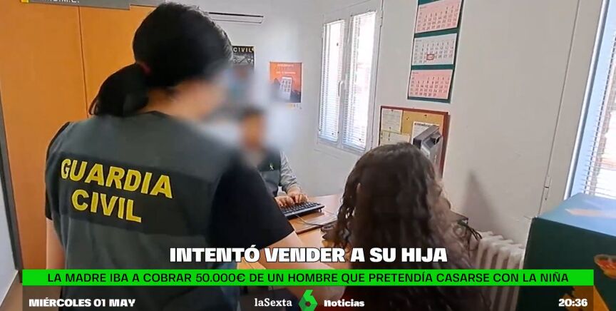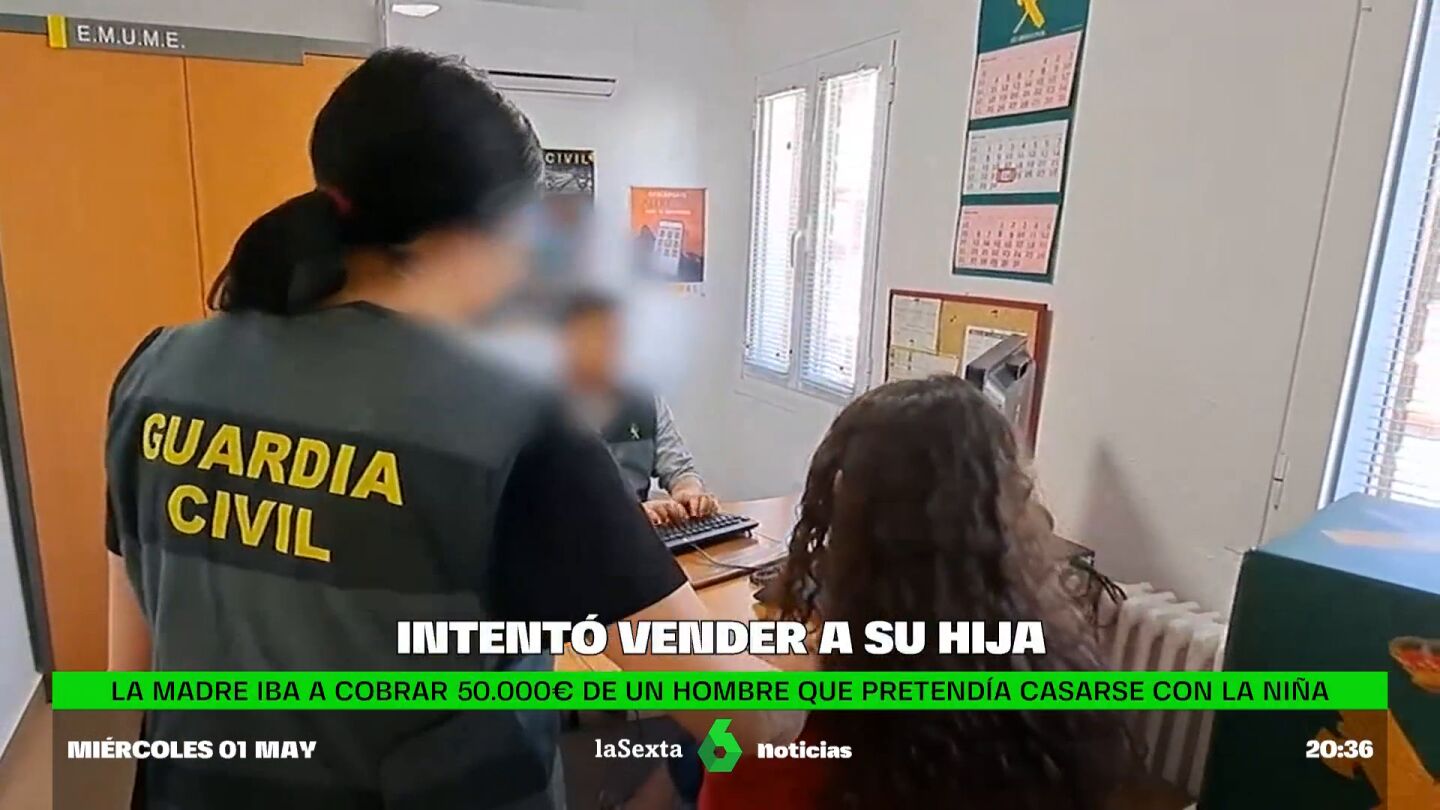 La Guardia Civil ha evitado el matrimonio forzoso de una menor de 16 años. Tal y como se puede observar en las imágenes que acompañan estas línea, la madre de la chica ha sido detenida por intentar vender a su hija por 50.000 euros a un hombre que pretendía casarse con ella y llevársela al extranjero. A los dos se les acusa de un delito de trata de personas, mientras que la joven se encuentra ingresada en un centro de Albacete.