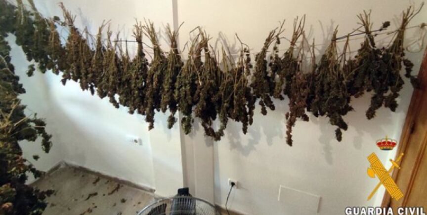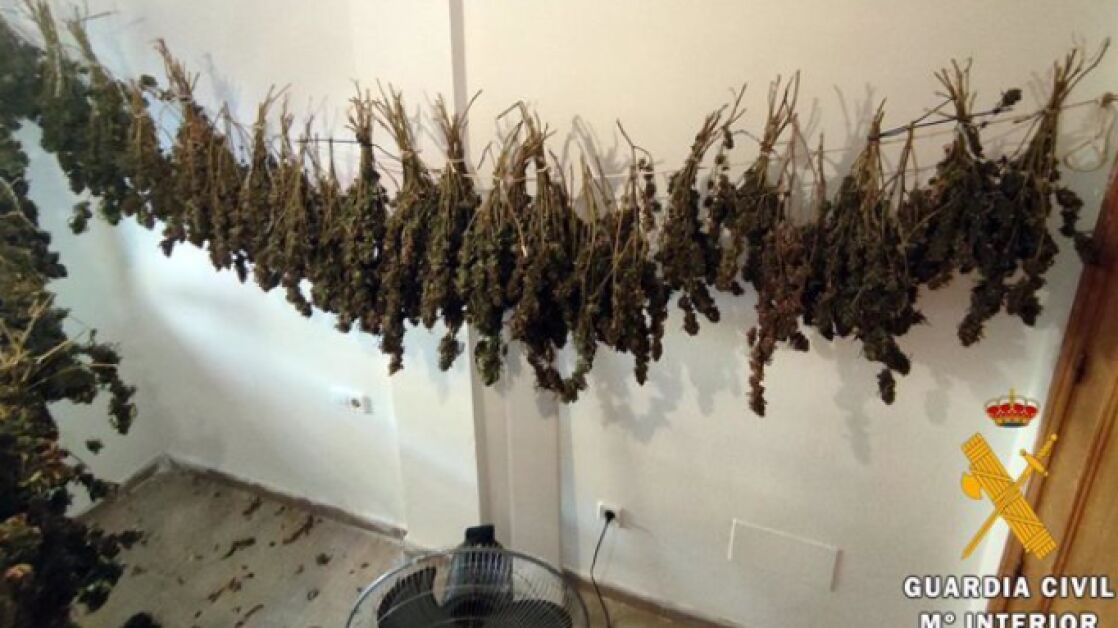 Como resultado de la operación denominada 'Palmerik', los agentes de la Guardia Civil han intervenido 150 plantas de marihuana que localizaron colgadas de cuerdas para su secado en una de las habitaciones de la vivienda, por lo que detuvieron a su responsable como presunto autor de un delito contra la salud pública.