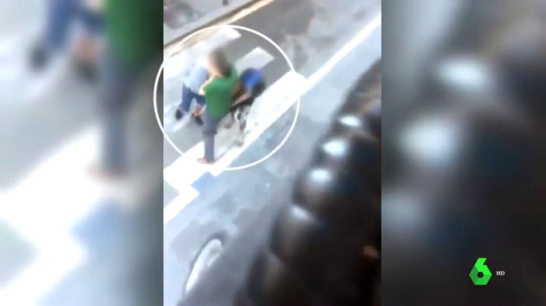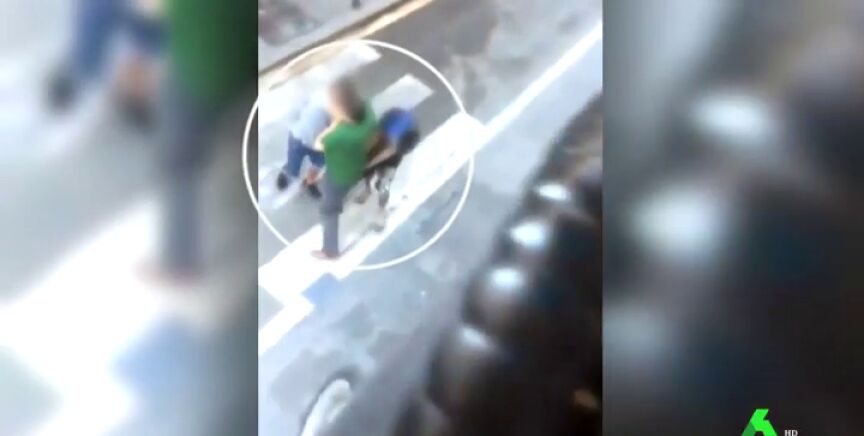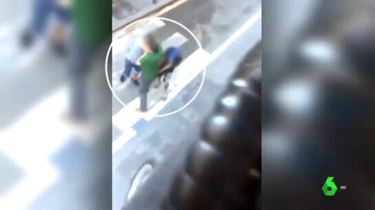 Los agresores rodean a la víctima, le quitan el objeto de forma violenta y se marchan caminando tranquilamente.